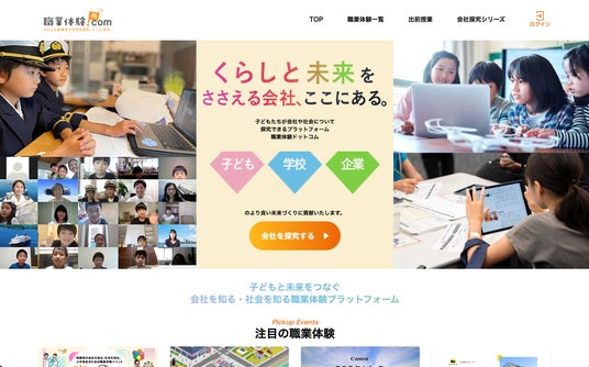 子どもたちが社会について探究できるプラットフォームです。職業体験イベントの検索、申し込みや、「会社探究シリーズ」で、社会についての視野を広げる機会をつくっています。職業体験ドットコム