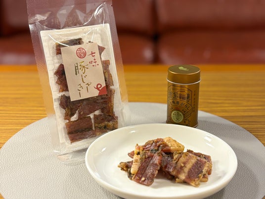 丁寧に仕込んだ厚切り豚バラジャーキーに、京都・七味家本舗の七味が出会いました。