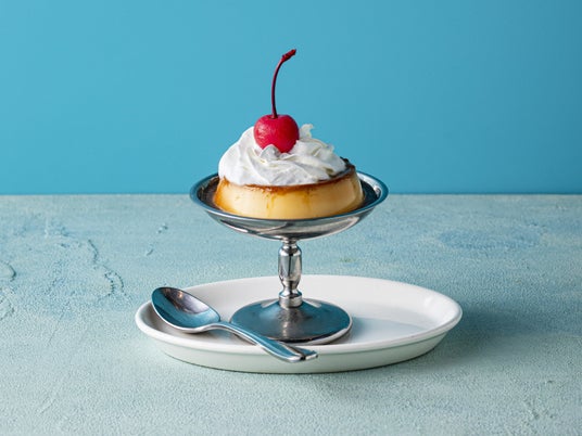 ホイップとチェリーがのった、見た目もかわいいレトロなプリン。しっかりとした固さがありながら、なめらかな口どけにこだわりました。甘さ控えめで卵のコクがあり、ほろ苦のカラメルをたっぷり絡めて楽しめます。