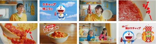 忙しい朝のキッチンで「何を作ろう?」と悩む主婦のもとへ、ドラえもんが登場し、新しい調理法を提案します。フライパンでトマトケチャップを焼くだけで、濃厚でコク深い味わいに変化。卵やソーセージなど、身近な食材と合わせるだけで、簡単なのに満足感のある一皿が完成します。ドラえもんが「ケチャップを焼こう!!」と呼びかけるシーンが印象的で、 楽しくキャッチーなCMに仕上がっています。