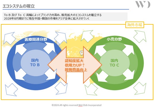 食品・ウェルネス・メディカルコスメを軸とした既存事業に、医療・介護・社会福祉分野の周辺事業を組み合わせることで、ブランド力・販売力・財務基盤の強化を同時に実現するエコシステムの構築を目指します。