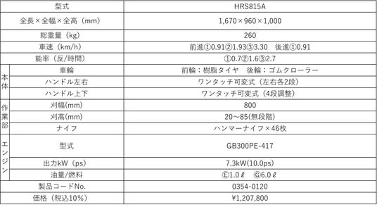 本製品は、現在販売中の「HRS815」のマイナーチェンジモデルで、業界初※1のFIエンジンを搭載しています。FIエンジン搭載により、エンジン始動性、メンテナンス性、出力安定性が向上しました。また、クローラーロック搭載により安定した走行を実現します。