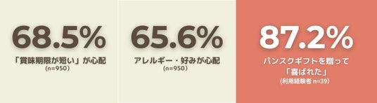 「非常に物珍しくセンスが光るという印象」「新しいギフトの形が出た、今までは全国のパンのいろんな種類のパンギフトはどこにもなかったと思うので」「年代・性別を選ばない」(利用経験者・自由記述より抜粋)