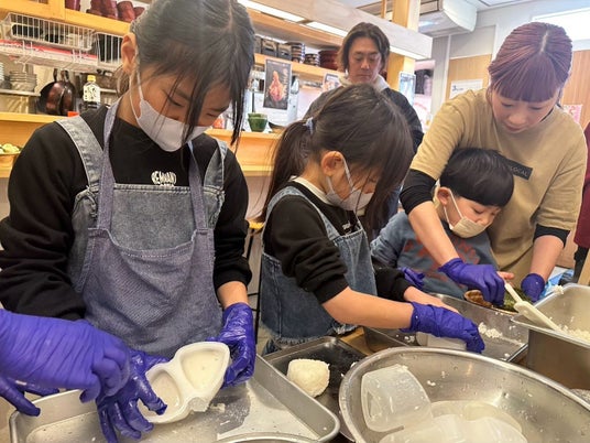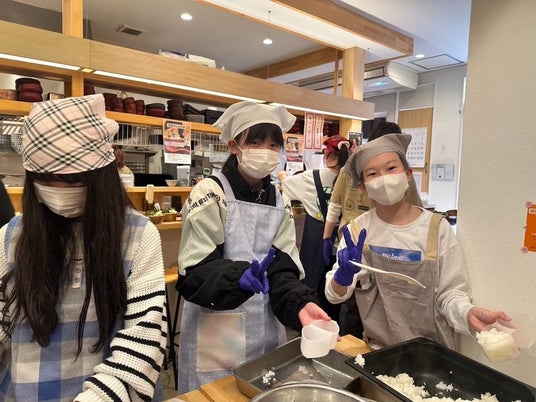 子どもたちが“小さなスタッフ”として、おむすびづくりに挑戦する様子 ※写真は過去の取り組み時の様子