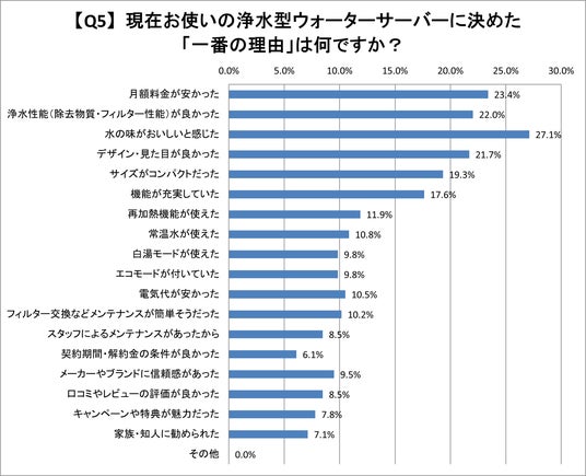 Q5.現在お使いの浄水型ウォーターサーバーに決めた「一番の理由」は何ですか?
