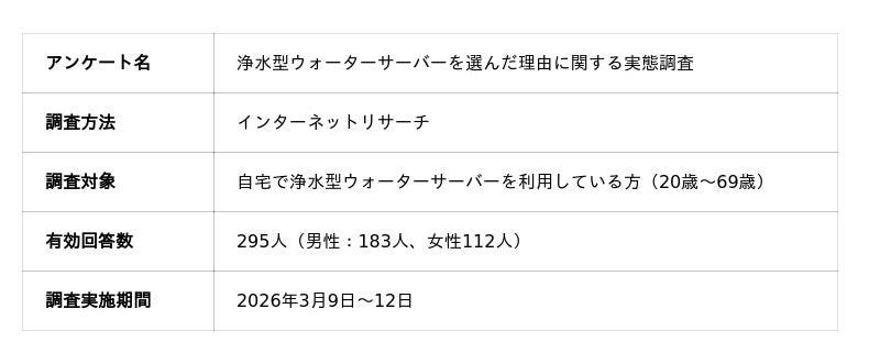 また、水道水からPFAS(ピーファス)が検出されるなどの社会問題を背景に、浄水型ウォーターサーバーを選ぶ際に重視した点や、知ったきっかけ、などの実態把握を目的として「浄水型ウォーターサーバーを選んだ理由に関する実態調査」を実施致しました。