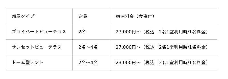 屋外テラス付きの客室では、海の香りや潮風を肌で感じながら、自然を身近に感じるひとときを。サンルーフ付きなので、ベッドに寝ころびながら空を眺める開放的な時間をお楽しみいただけます。テラス席で海や山の景色を感じながら味わうコーヒータイムは、格別なひとときに。