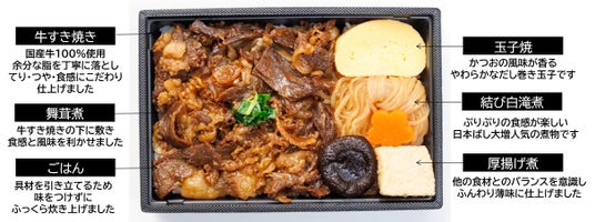 「日本ばし大増の看板商品となる“日本一の牛肉駅弁”を作りたい」その強い思いから始まったこの商品開発は、予想を遥かに超える苦難の連続でした。 焼肉、しぐれ煮、果てはハンバーグやホルモンまで、あらゆる調理法や部位を検討し、 約2年の試行錯誤の末たどりついたのは「牛すき焼き重」でした。シンプルだからこそ職人の技が光る牛すき焼きは、丁寧な下処理と加熱温度・時間の調整で、理想のてり・つや・食感を実現しました。最後の一口までお楽しみいただけるよう、付け合せは味の濃淡や食感のバランスにこだわりました。こうして日本ばし大増ならではの、甘・辛の両味を強めた江戸味の「牛すき焼き重」が完成しました。