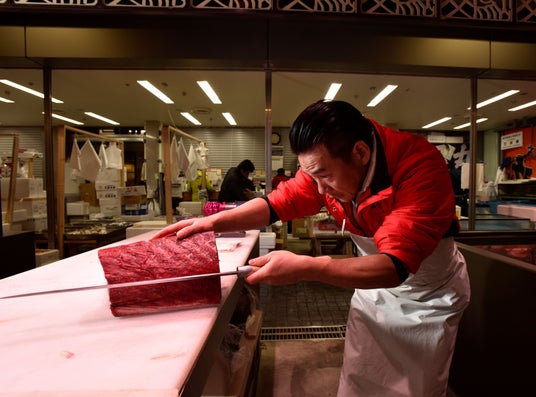 マグロの解体パフォーマンスショーを開催