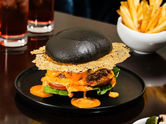 ステージの熱気と感動をインパクトで表現したスペシャルバーガーとカクテル。