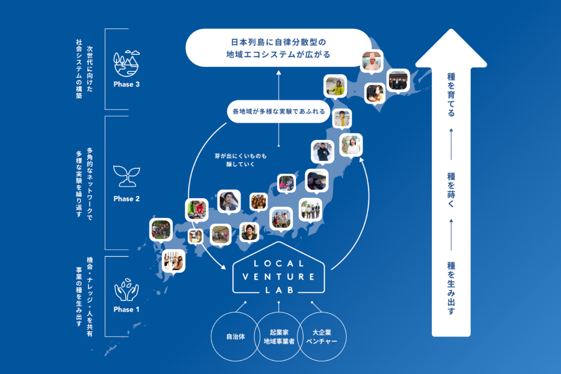 「ローカルベンチャーラボ」の背景には、70年代の高度経済成長以降、80年代から顕著になってきた経済資源の東京一極集中による人口流出と過疎化、それに伴う地域産業の担い手の減少、ひいては行政区の消滅すら課題となる地方の現実があります。この40年近く持続している傾向に対し、まず地方への移住者を増加させることを意図して2014年「まち・ひと・しごと創生総合戦略」が閣議決定され、いわば「地方創生1.0」が始まりました。