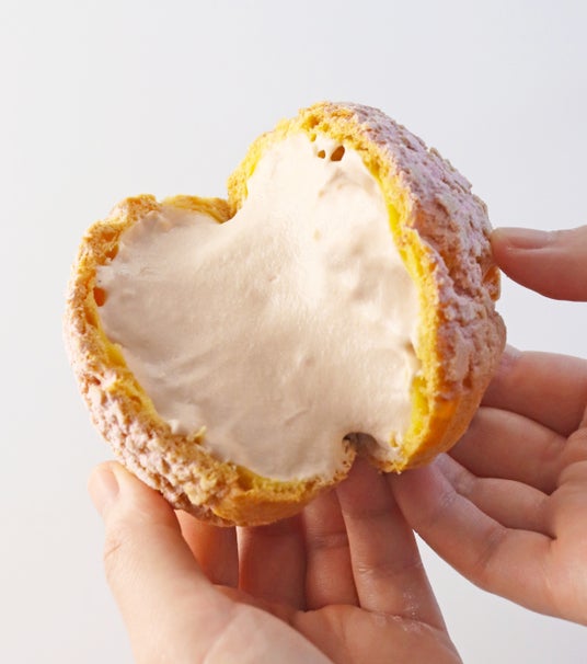 香ばしいクッキーシューの中に、あさぎり牛乳を使ったなめらかなさくらミルククリームをたっぷりと。