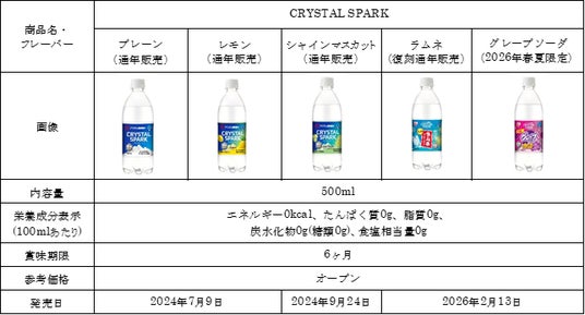 CRYSTAL SPARKは、心地よい強炭酸と、糖分を気にせず楽しめる無糖のスッキリとした爽快な味わい、華やかな香りを追求した炭酸水ブランドです。ブランド名には、水のきらめきや輝き、爽快に弾ける炭酸の爽やかさ、毎日の暮らしに煌めきを添えたいといった想いが込められています。