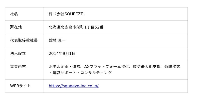 SQUEEZEは『空間と時間の可能性を広げるプラットフォームになる』というビジョンのもと、テクノロジーを活用した宿泊・観光業界のAX(AI Transformation)を推進しております。この北広島の地で、エスコン様が掲げるウェルネスの価値をさらに高める本プロジェクトにおいて、新たにサイエンス様の革新的な技術を導入できることを大変嬉しく思います。ホテルの運営を担う立場として、この『ミライ人間洗濯機』が個室サウナの価値を高め、究極の「整い」をお届けできると確信しています。今後も両社と連携し、現場から新たな感動とウェルビーイングを提供できるよう尽力してまいります。