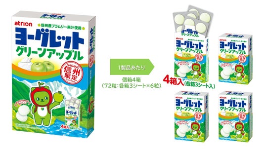 ヨーグレットやハイレモン、パチパチパニックなどを製造販売するアトリオン製菓株式会社(本社:長野県須坂市 代表取締役:山下 奉丈)は看板商品であるヨーグレットブランド初の試みとして、お土産向けに開発したご当地商品「ヨーグレット グリーンアップル」を3月18日より長野県内のお土産店などで販売を開始いたします。「ヨーグレット グリーンアップル」 は、信州産グリーンアップル(ブラムリー)の果汁を使用した、さっぱりとした爽やかな酸味が特徴です。