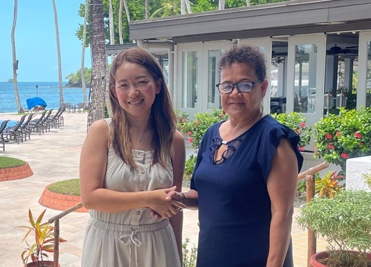 左から、TRUE BLUE共同代表 玉村めぐみ氏、パラオ パシフィック リゾート総支配人 Lucy Sugiyama