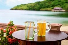 本リゾートでは、MOU締結に先立ち、ホテルで提供したコロナビール瓶をリサイクルしたビアグラスを製作し、ビアガーデンで利用する取り組みを2025年夏より開始しています。