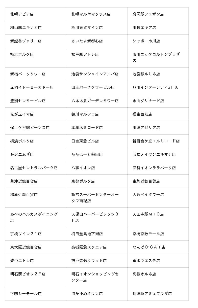 ※実施店舗は下記をご参照ください。