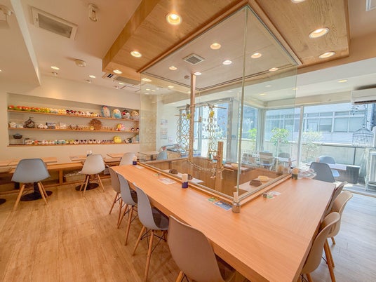 楽しく暮らしているインコたちを眺めながら、自慢のことりスイーツやご飲食を楽しめる、大阪 心斎橋にある「ことりすまいるカフェ」。