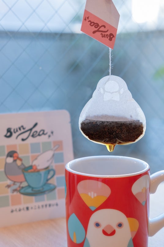 文鳥ティーバッグと一緒に使うと、かわいい姿が引き立つデザインです。