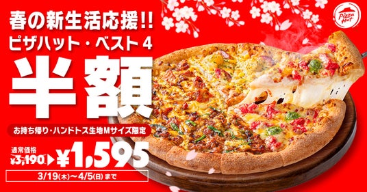 1.【新生活応援セール】大人気「ピザハット・ベスト4」が期間限定でお持ち帰り50%OFF!