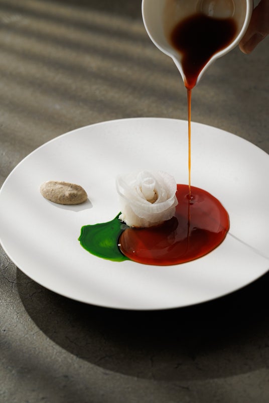 ?井屋ザ・レストランでは、国内外の名店で研鑽を積んだ群馬出身のシェフ、?山ひろが地元の食材を最大限に生かし、群馬の郷土料理の新たな味を模索した『上州キュイジーヌ』(創作フランス料理)を提供。自身の料理に合わせたノンアルコールのドリンクペアリングも考案しています。劇場型オープンキッチンで繰り広げられる料理の風景を眺めながら、直接シェフたちとの会話も楽しんでいただける空間です。