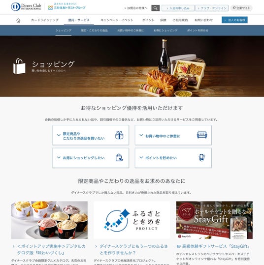 - ダイナースクラブ会員サイトへの掲載、会員向けDM・郵送物等でのご案内、特別優待のご提供