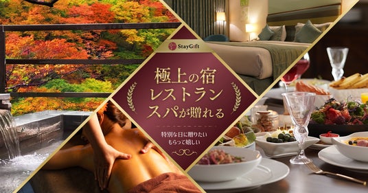 「StayGift」は、厳しい基準をクリアした名店のコース料理や、ラグジュアリーホテルでの極上スパをはじめ、さまざま体験チケットを選んでギフトすることのできるサービスです。エグゼクティブ層が日常的にカジュアルギフトできる体験からハイエンドで非日常な体験ギフトまで国内最大レベルで取り揃えており、ご家族やご友人への個人的な贈り物からビジネスシーンにおけるギフトまで、上質な「時間」をスマートに贈る体験を提供しております。