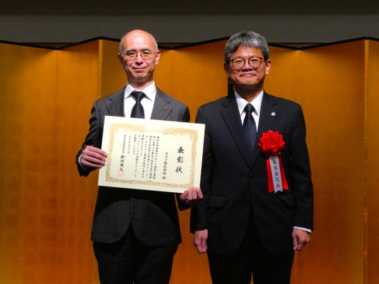 2026年3月18日に行われた表彰式 左より カゴメ株式会社 SCM本部 物流企画部 課長 鈴木 隆之、国土交通省海事局次長 河野 順 様