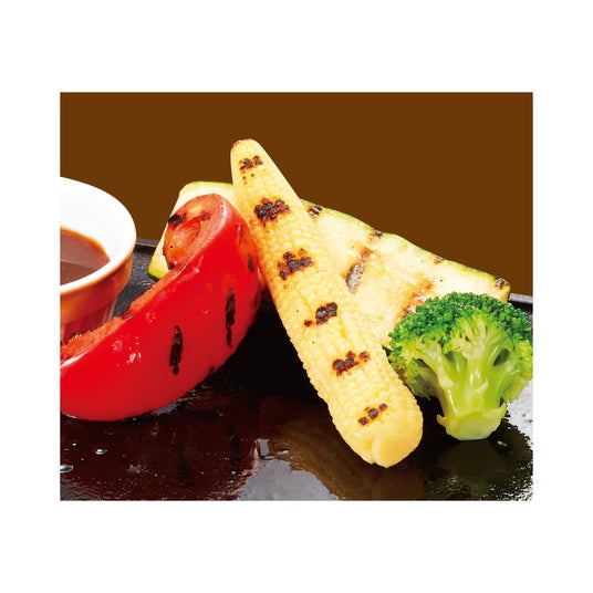 鉄板メニューの付け合わせをプラス209円(税込)で変更できる「直火焼き野菜」が、ズッキーニ、ヤングコーン、赤パプリカなど、食感や彩りを楽しめる野菜にリニューアルしました。直火で香ばしく焼き上げた野菜の素材本来の味をご堪能いただいたり、ハンバーグなどのソースにディップしていただいたりと、お好きなスタイルでお楽しみいただけます。
