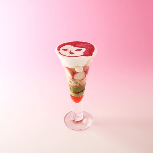 大人気パフェのお顔を、通常の「手鏡に映る女性」と期間限定の「よじこ」の2種類からお選びいただけます。4月1日(水)~4月28日(火)限定ですので、この機会にぜひ!
