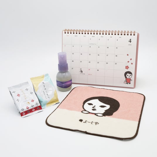 よーじやの人気商品と「よじこ」グッズを詰め合わせたお得なセットは、カレンダーやピローミストなど、おうちでお使いいただけるアイテムのセットと、ネックストラップや巾着など、お仕事でお使いいただけるアイテムが入ったセットの2種類をご用意。こちらのセットをご購入いただいた方には「よーじやの日」限定トートバッグをプレゼント!