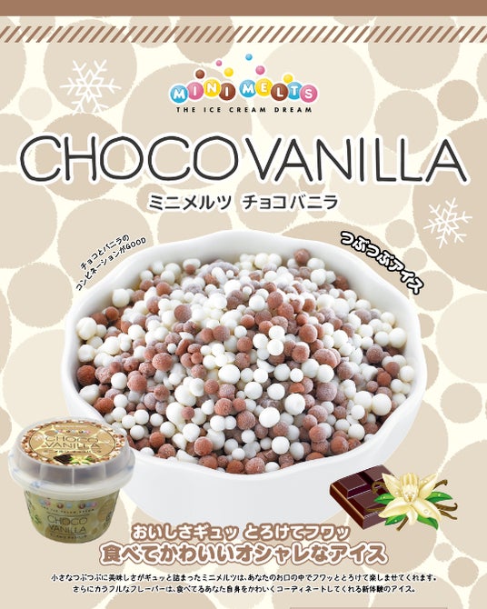 小さなつぶつぶの中においしさがギュッと詰まったミニメルツは、口の中でふわっととろける新感覚のアイスクリームです。