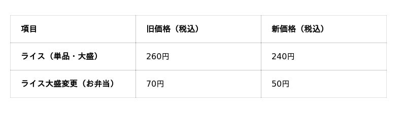 当社は2025年6月にも、家計応援企画の一環として、ライス大盛(お弁当)を90円から70円へと値下げいたしました。今回の改定では、そこからさらに20円引き下げ、当初の90円から累計40円の値下げとなる「50円」にて提供いたします。