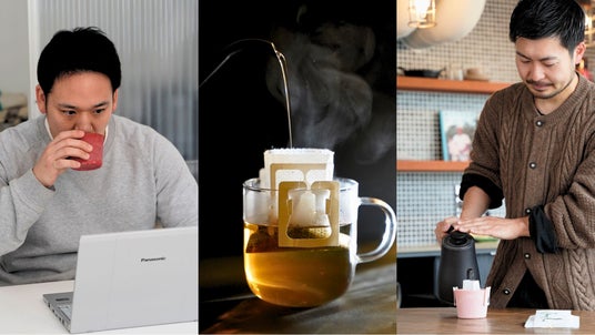 ドリップパック形式の採用で急須不要。愛用のマグとケトルで、コーヒーと同じ作法で淹れられる「馴染み深さ」の提供。