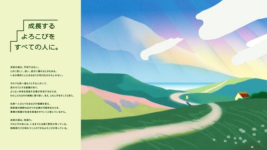 また、本スローガンの世界観を象徴するキービジュアルとして、困難な道を一歩一歩進みながら成長していく姿を描いたイラストを制作しました。