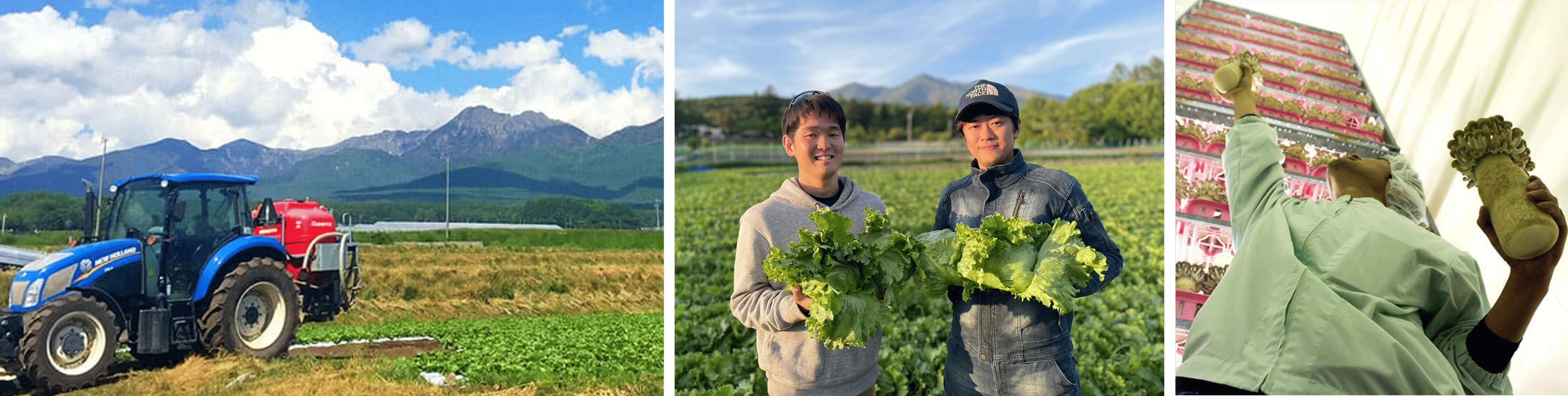 事業内容:青果物の生産(椎茸、レタス、ブロッコリー、イチゴ、シャインマスカット等)、加工、販売)