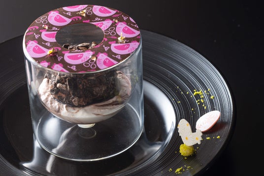 メニュー名:なめらかなショコラのガナッシュにビタークッキーでコーティングしたカカオのグラスをのせて