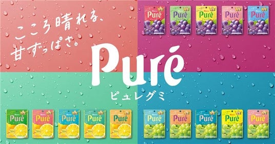 『ピュレグミ』は、2002年の発売以来、幅広い世代の方からご支持いただいているカンロの人気商品です。フルーツのおいしさを引き出す“すっぱいパウダー”と独自の“果肉食感”により、噛むほどにフルーティな甘ずっぱいおいしさが広がり、食べた瞬間こころが晴れるように、ちょっとハート(気持ち)があがるハート型のグミです。