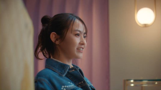 CMでは、フィッティングルームを舞台に鏡を見る伊藤万理華さんが登場。洋服の素敵さにトキメキながらも、周りの人にはどう思われるか、不安と緊張からカーテンの前で立ち止まります。そこに、鏡の中からもうひとりの自分がピュレグミと一緒に登場。「自分が好きならそれだけでいいじゃん」と優しく背中を押され「ときめく私がいちばん私らしい」と、花が咲くように舞う伊藤さん。フィッティングルームの中でトキメキを封印した状態を「蕾(つぼみ)」、屋外でトキメキを解放した状態を「開花」と捉え、“自分軸で生きる素敵さ”を感じていただけるよう、内に秘めた情熱や可能性が解き放たれる瞬間を表現しました。YOASOBIの楽曲に乗せ、ピュレグミをきっかけに明るく前に進む躍動感あふれる映像に仕上げました。