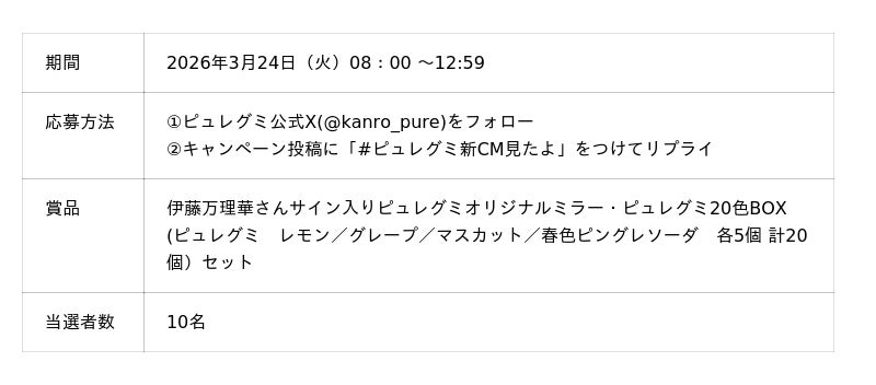《発売を記念し、ピュレグミ×伊藤万理華さんサイン入りミラーやピュレグミのセットが当たるキャンペーンを開催!》