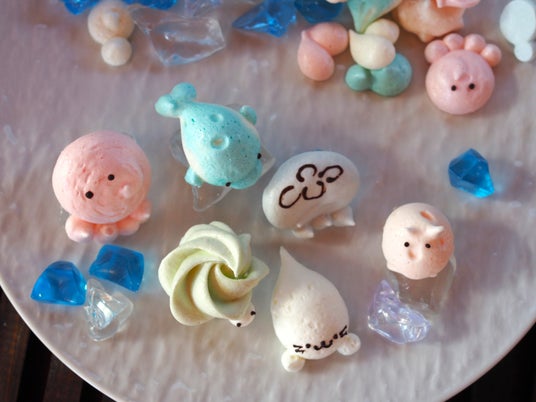 フランス菓子「ムラング・ココ」をベースに、イルカやアザラシのフォルムへと昇華。