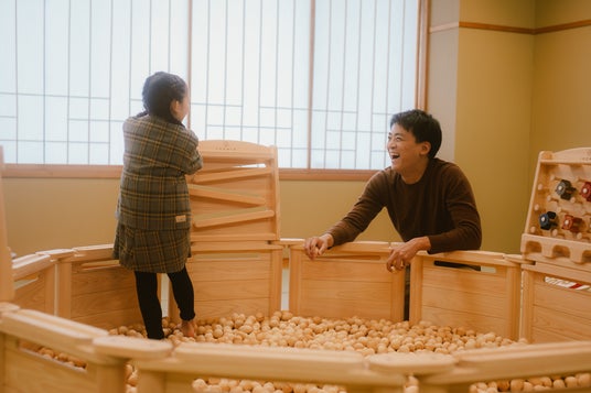 「アクティビティルーム」ヒノキのボールが入った木製ボールプール