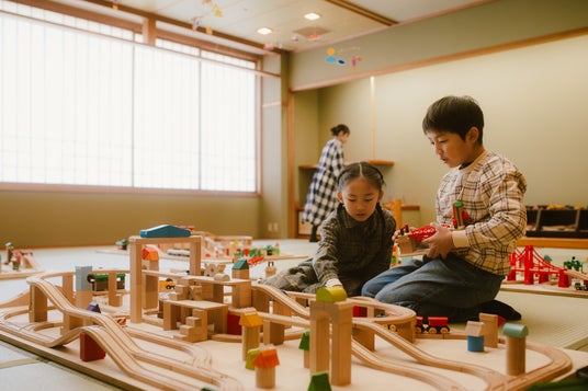 「森のラウンジ」の向かい側には、3つの遊び場を用意しています。おもちゃのピアノや鉄琴を備えた「サウンドルーム」、木のレールを繋ぎ合わせて列車を走らせ、自分だけの街を作ることができる「トレインルーム」では、独創力や発想力を存分に発揮して楽しむことができます。