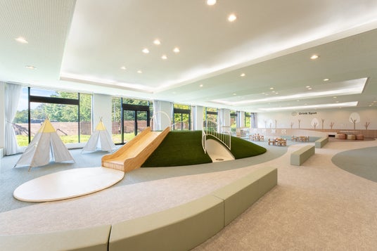 丸みを帯びた遊具の形、高さなどに配慮した設計の「キッズマウンテンエリア」(0~6歳児専用)