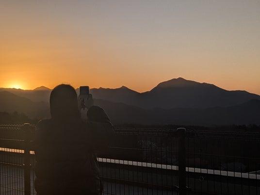 峰を染めて昇る朝日を眺める、特別な朝のひと時