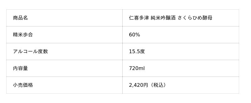 【しずく媛部門 第2位】仁喜多津 純米吟醸酒 さくらひめ酵母