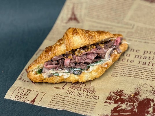 バター香る〈ドンク〉のクロワッサンに、細やかに仕上げた神戸ビーフのローストビーフを贅沢に