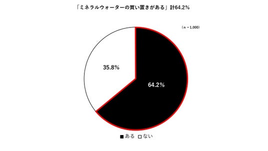 ・「ミネラルウォーターの買い置きがある」人は64.2%となり、理由として、「災害時に使いやすいと思うから」(53.9%)、「災害時に限らず、日常的に使いやすいと思うから」(38.3%)、「なんとなく安心できるから」(32.1%)の3項目が上位に挙がりました。さらに、昨年に比べ、「災害時に使いやすい」「何となく安心できる」という理由が大きく上昇。防災意識の高まりから水の備蓄が一般的となり、水分補給に限らない水の用途が広がっていると考えられます。