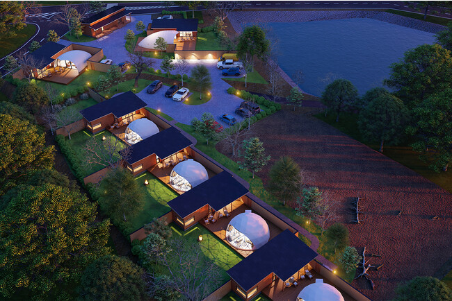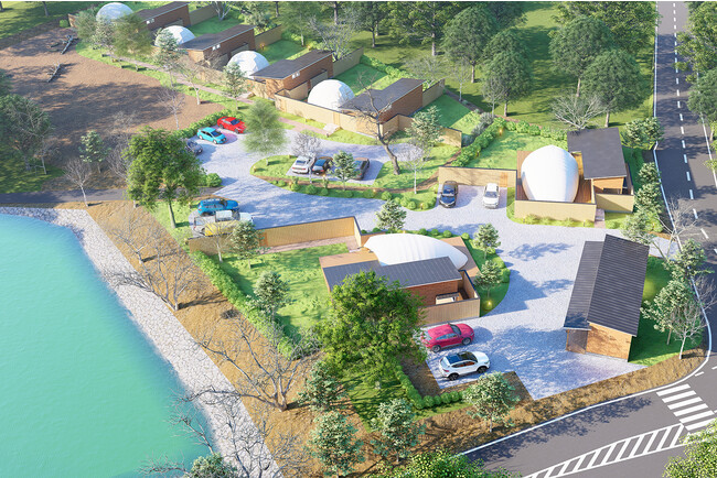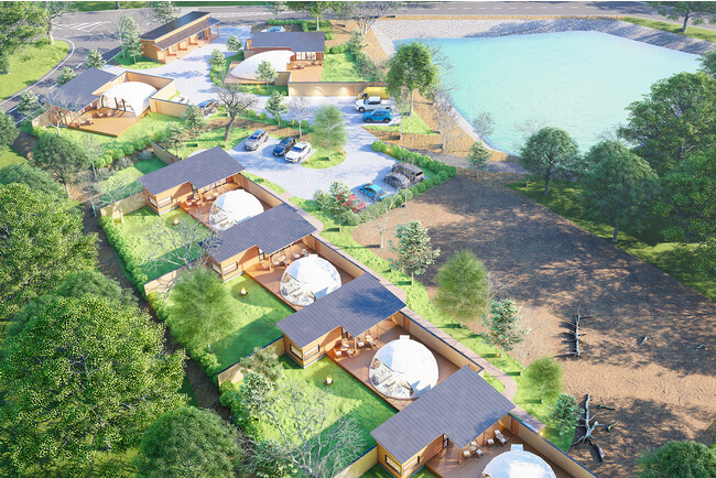 このレイクリゾートに全棟に専用の温泉風呂を設けた「リトリートグランピング千葉亀山」がオープン。